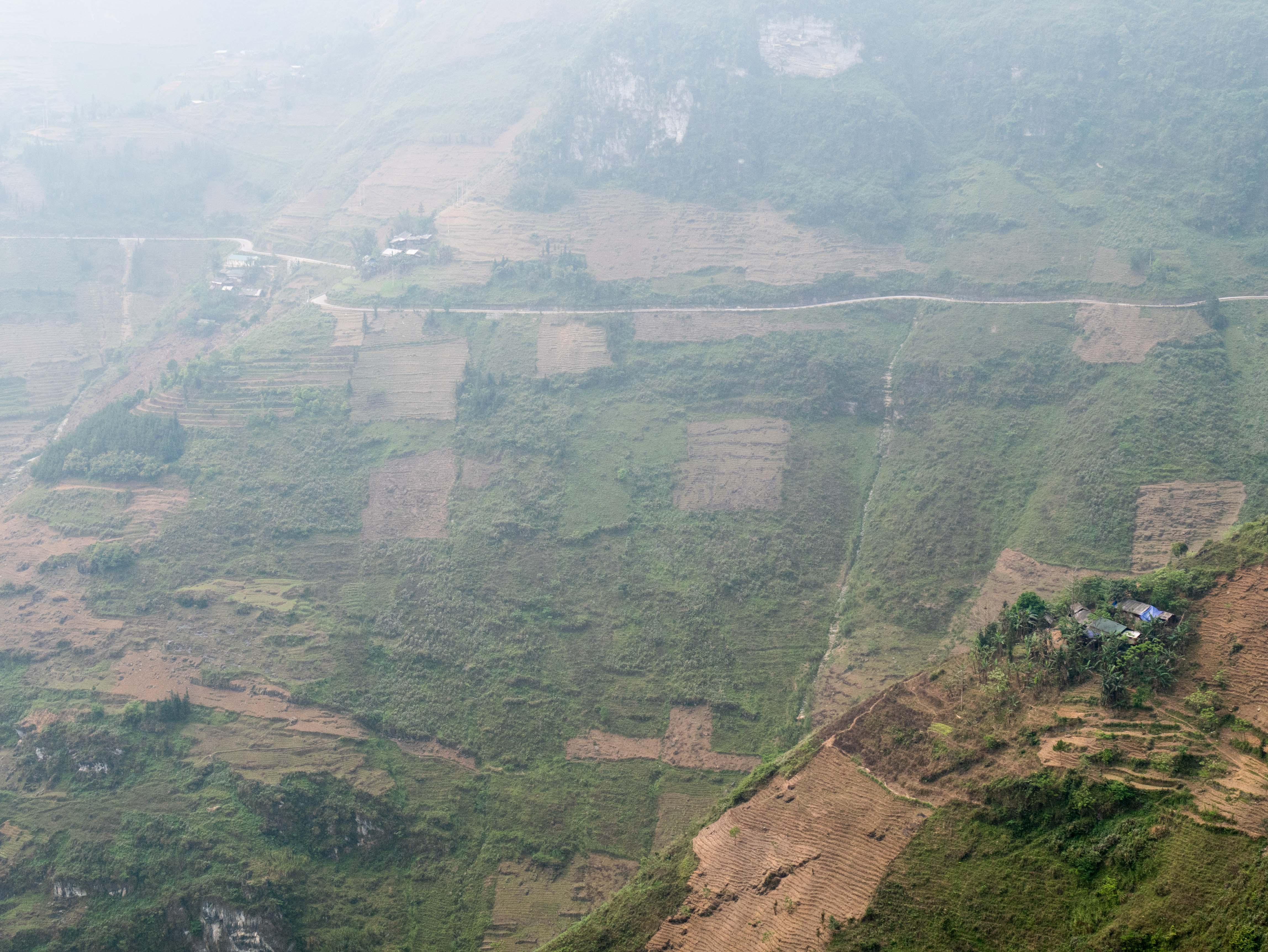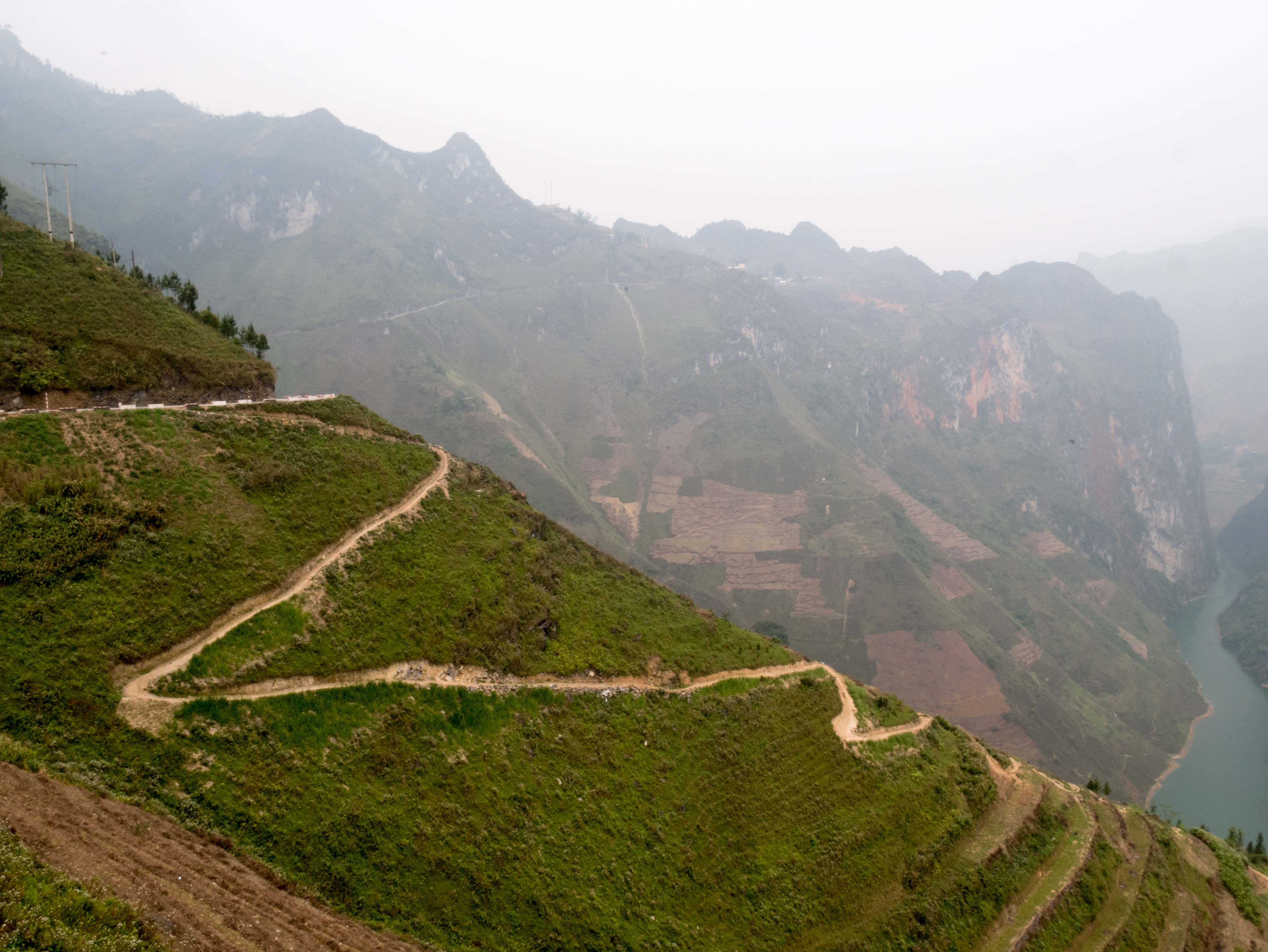Le jour suivant, nous demandons au taxi de venir nous chercher une nouvelle fois devant l’hôtel. À 9h nous quittons Dong Van pour Meo Vac. La ville n’a vraiment aucun intérêt si ce n’est celui de se remettre des paysages à couper le souffle que j’ai pu observer sur la route ‘ le plateau de Mai Pi est fantastique. Je ne pense pas exagérer en disant que c’est une des plus belles chose que j’ai pu voir. Dans la vallée une rivière finie de sublimer un paysage sans équivalent. Le chauffeur a du ronger son frein une paire de fois car à la sortie de chaque virage, nous lui demandions de nous arrêter afin de prendre une photo, faire une vidéo ou juste prendre le temps d’admirer le paysage !