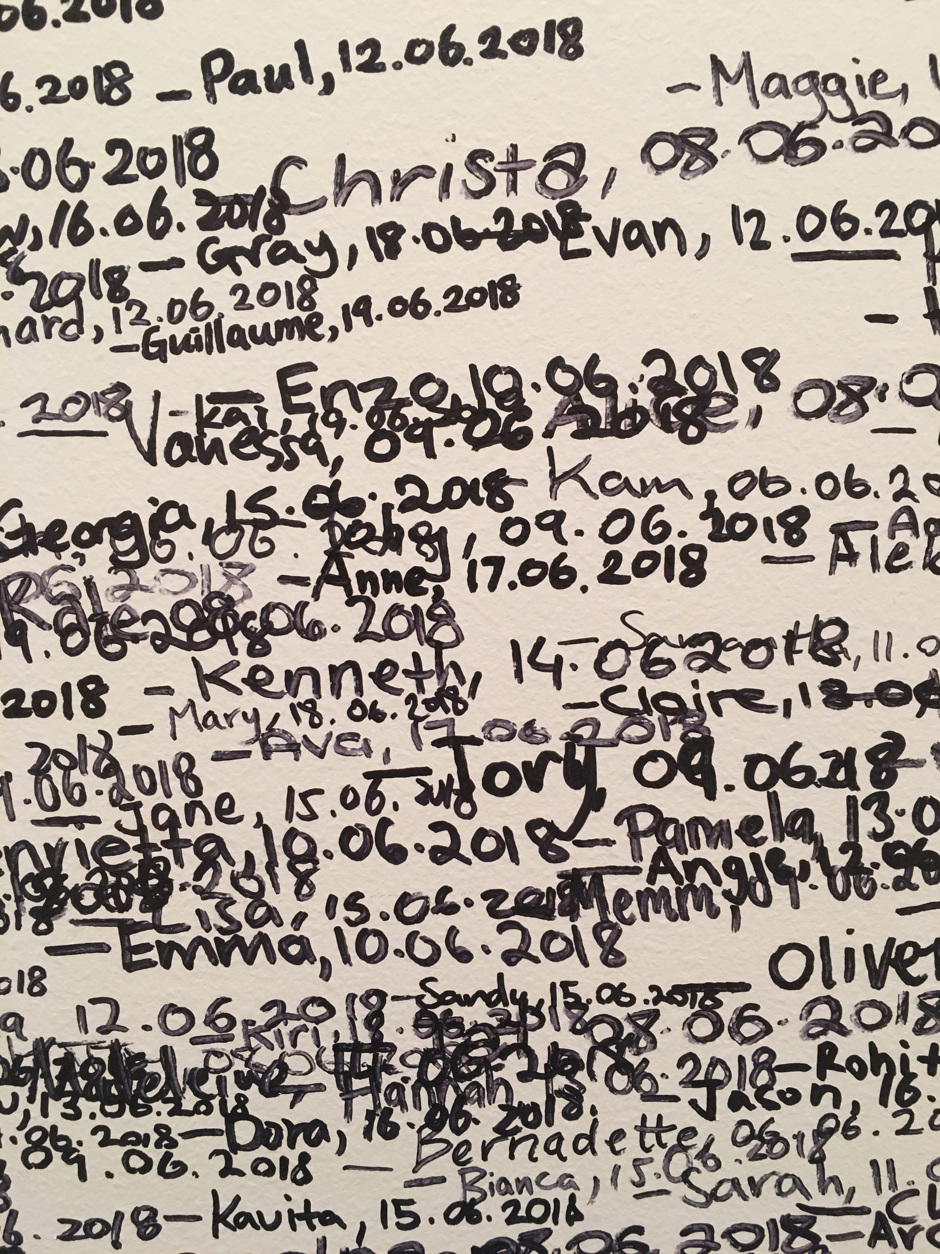 - Avant de sortir on pouvait se mesurer et inscrire notre nom avec la date de la visite sur un mur
