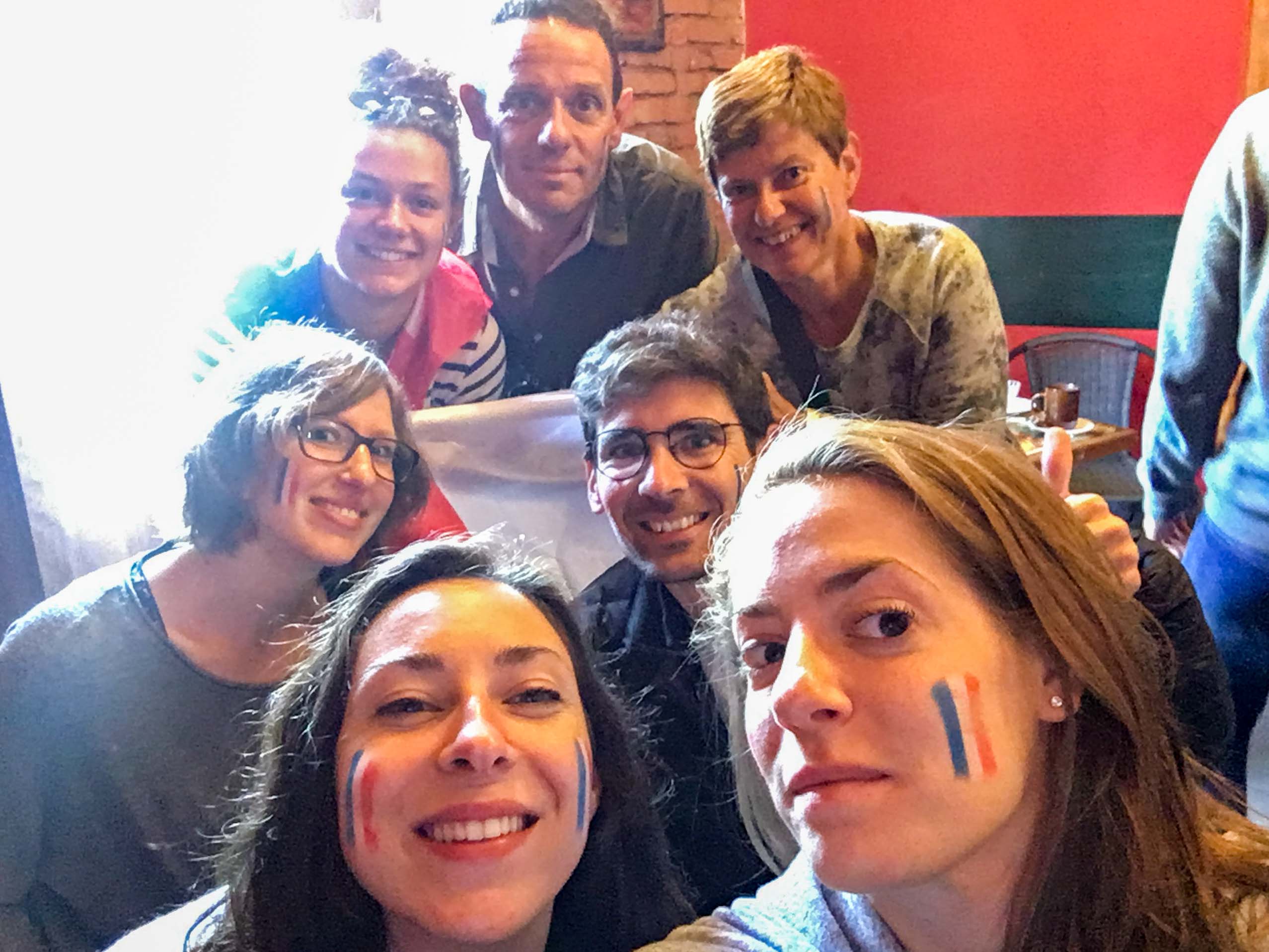 Nous faisons bien de nous y présenter à l’avance car au coup d’envoi, plus une place dans le bar, assis comme debout. Tout le monde avait un maillot de la France ou les joues peinturlurées. Nous ne nous connaissions pas 1h avant mais pourtant, le temps d’un match, toutes les personnes présentent dans le bar étaient les meilleures amis du monde et après une victoire 4 à 2, je peux vous dire que, même pour moi qui ne suis pas des plus tactile, les accolades, embrassades, bousculades, douches de champagne… de bière… ont fini d’acter un pacte jusqu’alors tacite. Désormais nous pourrons le dire, pour le sacre des bleus, nous étions à Valparaiso !