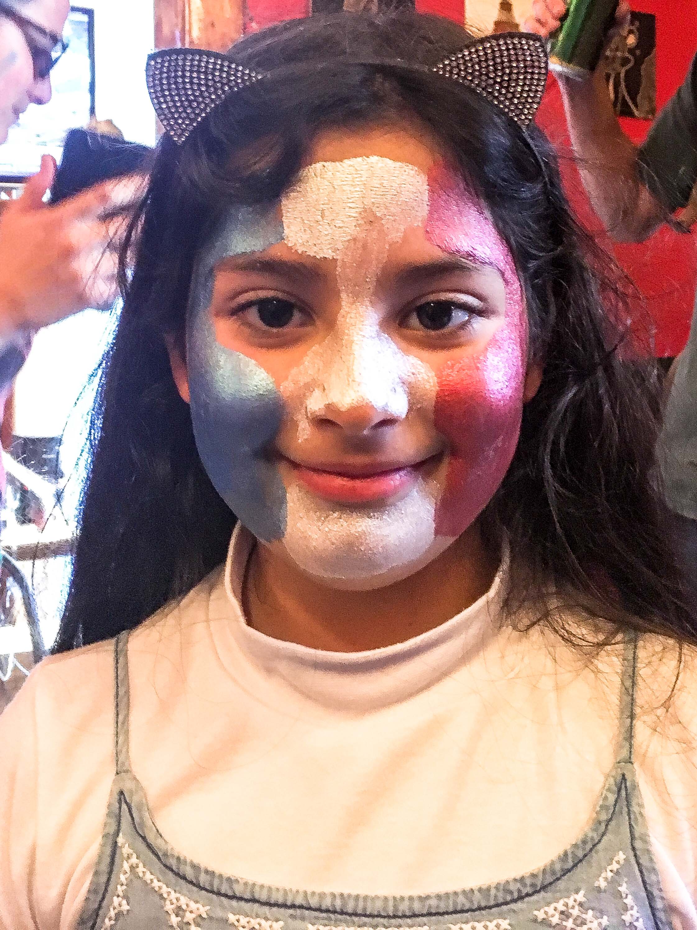 Alors quand nous avons franchi la palissade, quelle fut pas notre bonheur de voir une sorte de bar en plein air avec des tables éparpillées un peu partout. Des gens de tout age dansant en faisant tourner leurs foulards blancs pendant que des groupes se relayaient sur une scène improvisée. Un des serveurs s’est précipité sur nous « Campion del Mundo ! », j’avais alors oublié que nous étions tous maquillés. Il nous installa à une table et nous proposa de la bière au litre des empenadas et nous approvisionna régulièrement jusqu’à 21h.