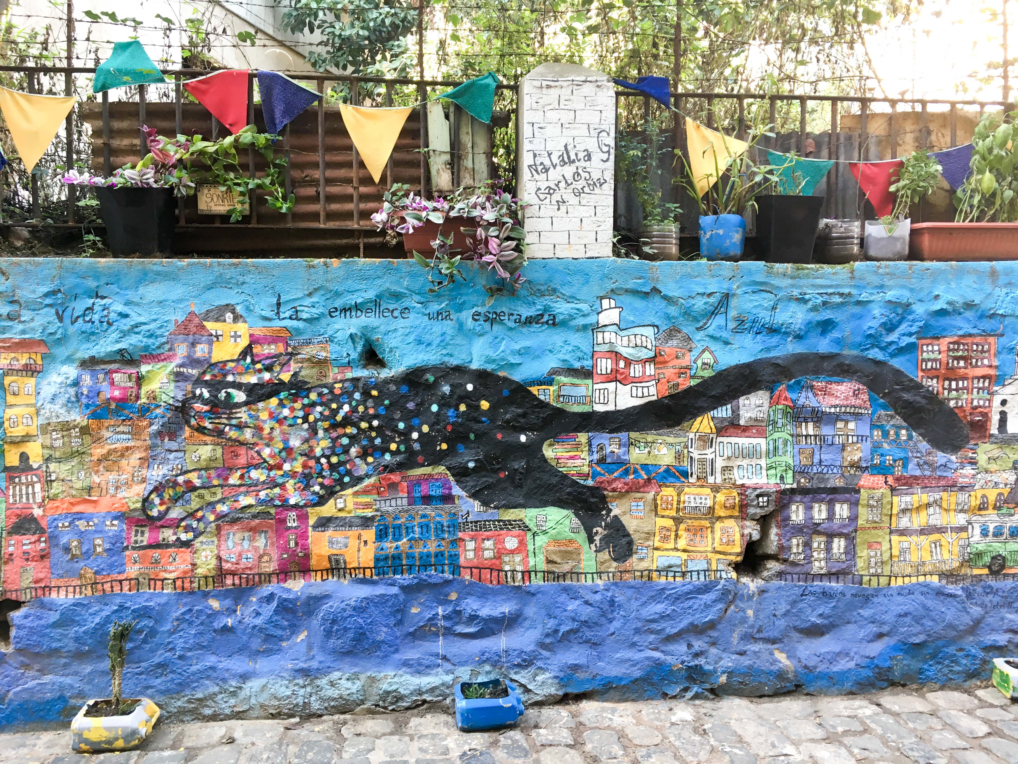 À Valparaiso, ma visite a été mené par un jeune français installé depuis peu dans la ville. Graffeur à ses heures perdues, il nous a appris à comprendre et analyser les graffitis que l’on peut trouver dans quasiment toutes les rues de la ville (nous y reviendrons).